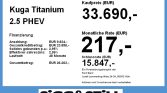 Wir freuen uns auf Ihren Anruf Es handelt sich hier um eine Tageszulassung aus unserem Hause einen Ford Kuga Titanium 2.5I Plug-In-Hybrid NEUES MODELL mit einer TOP AUSSTATTUNG aus unserem FordStore