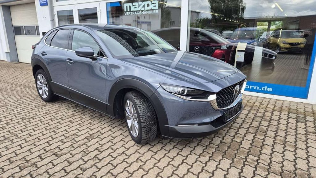 Design-Paket Matrix-LED Lichtsystem mit 40 Leuchteinheiten LED-Lichtsignatur und -Tagfahrlicht Chromapplikationen am Lenkrad, Startknopf und Handschuhfach 3-Speichen-Sport-Lederlenkrad mit Schaltwippen für das SKYACTIV-Drive Automatikgetriebe und mit Lenkradheizung Heck- und Seitenscheiben hinten abgedunkelt Rahmenloser Innenspiegel Säulenverkleidung mit Hochglanzfinish18-Zoll-Leichtmetallfelgen in Silberi-Activsense-Paket Ausparkhilfe mit Notbremsassistent für den hinteren Querverkehr (SBS-RC) Ausparkhilfe (RCTA) Erweiterte Stauassistenzfunktion (CTS) 360° Monitor Frontüberwachung (FCTA) Aufmerksamkeitsassistent (DM)Mazda SD-NavigationssystemSpurwechselassistent Plus (BSM) und Ausparkhilfe (RCTA)Komfortblinkfunktioni-stop: intelligentes Motor Stop-/ Start-SystemMazda Connect mit 8,8-Zoll Display und Mazda Audio System mit USB-Anschluss, Digitalradio-Tuner (DAB) und 8 LautsprechernVerkehrszeichenerkennung (TSR)LichtsensorKlimatisierungsautomatikApple CarPlay® und Android Auto®Knie-Airbag für FahrerLenksäule höheneinstellbarLogIn: Schlüsselloses ZugangssystemDynamische Stabilitätskontrolle (DSC)LederschaltknaufMüdigkeitserkennung (DAA)Enteiserfunktion für ScheibenwischerSmart Cargo SystemFrontairbagDachheckspoiler in Schwarz lackiertElektrische FensterheberGeschwindigkeitsregelanlageElektrische HeckklappeKontrastelemente in der Mittelkonsole, dem Armaturenbrett und den Seitentüren (i.V.m. grauen Stoffsitzen in Dunkelblau, i.V.m. schwarzer oder weißer Lederausstattung in Braun)ReifendruckkontrollsystemAlarmanlageNotbremsassistent (SBS) mit Fußgängerer- und RadfahrererkennungLenksäule längeneinstellbarEinparkhilfe, vorneKopf-/ Schulter-Airbag vorne und hinten; Seitenairbag vorneAußenspiegel automatisch abblendend und anklappbar, elektrisch einstellbar und beheizbarElektronische ParkbremseBerganfahrassistentElektronische Parkbremse mit Auto-Hold FunktionAdaptive Geschwindigkeitsregelanlage mit Stauassistenzfunktion (i.V.m. Skyactiv-Drive Automatik) (MRCC)