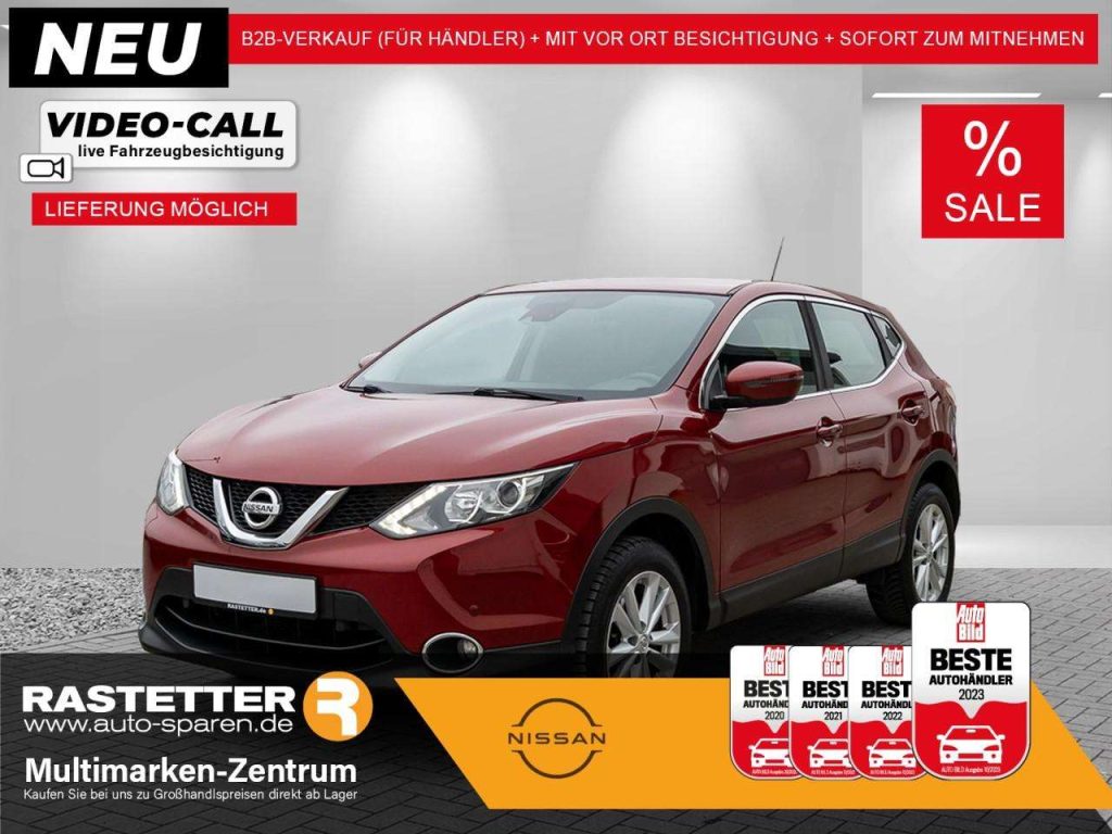 NissanConnect Navigationssystem mit Touchscreen-Farbdisplay (Radioempfang digital (DAB), 6 Lautsprecher, Bluetooth-Schnittstelle, USB-Schnittstelle, Rückfahrkamera) Metallic-Lackierung AUX-IN-Anschluss (AUX-IN) Airbag Beifahrerseite abschaltbar Airbag Fahrer-/Beifahrerseite und Seitenairbag vorn Ambientebeleuchtung Anti-Blockier-System (ABS) Frontantrieb Audiobedienung am Lenkrad Audiosystem: Radio mit CD- und MP3-Player Automatische Fahrlichtschaltung Außenspiegel elektr. anklappbar Außenspiegel elektr. verstell- und heizbar Außentemperaturanzeige Blinkleuchte in Außenspiegel integriert Bluetooth-Schnittstelle Bordcomputer Bremsassistent (Nissan Brake-Assist) Coming-Home-Lichtfunktion (Friendly Lightning) Elektr. Bremskraftverteilung (EBD) Elektron. Stabilitäts-Programm (ESP) Fahrassistenz-Paket (Verkehrszeichenerkennung, Einparkhilfe vorn, Einparkhilfe hinten, Innenspiegel mit Abblendautomatik, Autonomer Notbrems-Assistent, Spurhalteassistent) Aktive Fahrkomfortregelung (Fahrwerksdämpfung) Berganfahr-Assistent Fernlichtassistent Geschwindigkeits-Warnanlage akustisch (Speed-Limiter) Kurvenbremskontrolle (Aktive Spurkontrolle) Fahrer-Informations-System (FIS) mit Farbdisplay Fensterheber elektrisch vorn + hinten Fernentriegelung Tankklappe Freisprechanlage Bluetooth Geschwindigkeits-Regelanlage (Tempomat) Getriebe 6-Gang Getränkehalter in Mittelkonsole Gurtstraffer Handschuhfach beleuchtet Heckscheibe beheizbar Isofix-Aufnahmen für Kindersitz Klimaautomatik 2-Zonen Kopf-Airbag-System Kopfstützen vorn und hinten verstellbar 17-Zoll-Leichtmetallfelgen Lendenwirbelstütze Sitz vorn links und rechts Lederlenkrad mit Multifunktion Lenksäule (Lenkrad) höhen-/längsverstellbar Leseleuchte vorn Mittelarmlehne vorn und hinten (mit Getränkehalter hinten) Nebelscheinwerfer Nebelschlussleuchte Parkbremse elektrisch Reifendruck-Kontrollsystem Rücksitz geteilt umklappbar Schalt-/Wählhebelgriff Leder Scheibenwischer mit Intervallschaltung Scheibenwischer mit Regensensor Servolenkung Sitz vorn links und rechts höhenverstellbar Sitzbezug: Stoff Sitzheizung vorn Sonnenblenden mit Spiegel Start/Stop-Anlage Steckdose (12V-Anschluß) in Mittelkonsole LED-Tagfahrlicht Türgriffe innen verchromt USB-Schnittstelle Wegfahrsperre (elektronisch) Wärmeschutzverglasung mit UV-Schutz Zentralverriegelung mit Fernbedienung