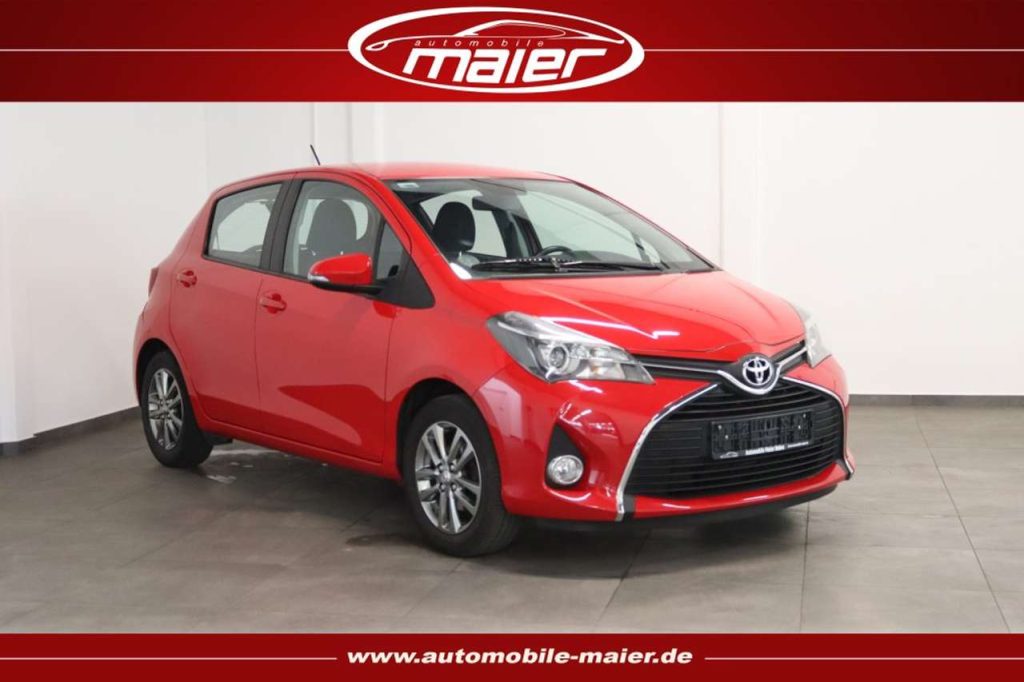 6 Lautsprecher Airbag Beifahrerseite abschaltbar Audiosystem: Multimedia Toyota Touch 2 Außenspiegel elektr. verstell- und heizbar Elektron. Stabilitäts-Programm mit Antriebs-Schlupfregelung (VSC mit TRC) Fensterheber elektrisch vorn Freisprechanlage Bluetooth Getriebe 6-Gang Innenausstattung: Aluminium / Chrom Isofix-Aufnahmen für Kindersitz Karosserie: 5-türig Klimaanlage Kühlergrill mit Chromrand Lenkrad (Leder) Projektor-Scheinwerfer Rückfahrkamera Sitz vorn links höhenverstellbar Sitzbezug / Polsterung: Stoff Tagfahrlicht Universal-Schnittstelle (USB-/ iPod-/ AUX-Anschluss) Zentralverriegelung mit Fernbedienung