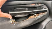 Linker portier binnen zijde, bekleding en deurgreep zit los.